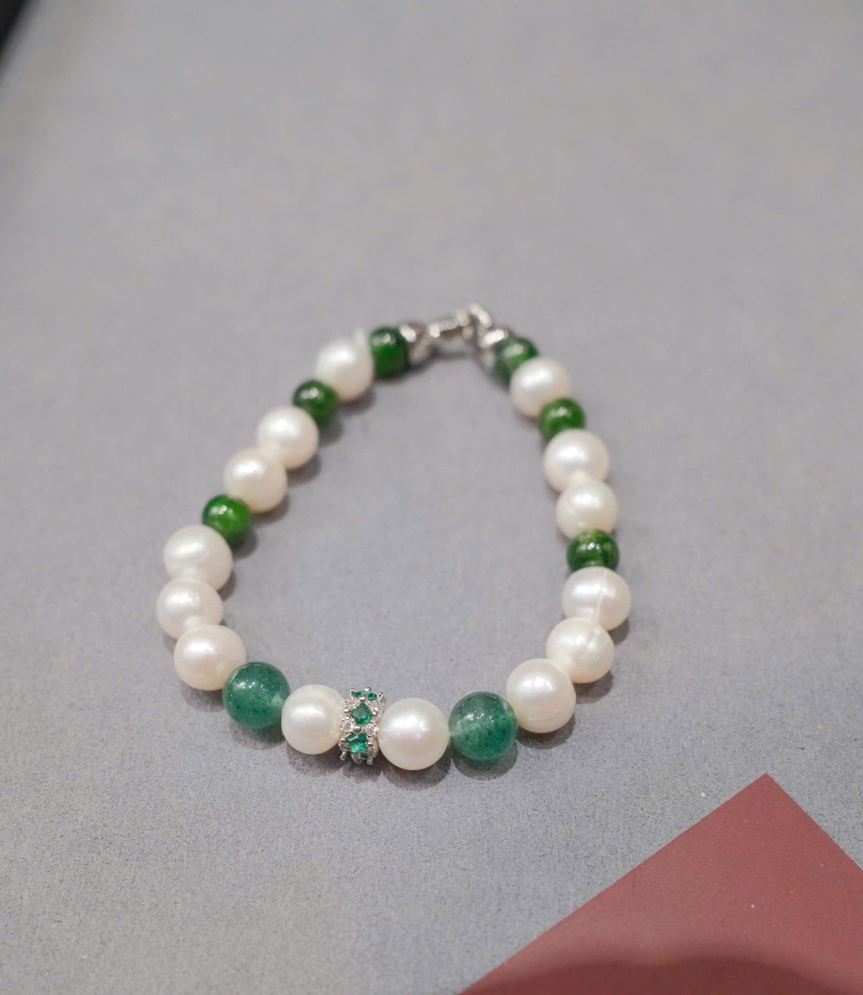 Be the first to review “Vòng tay ngọc trai mix thạch anh dâu tây xanh”